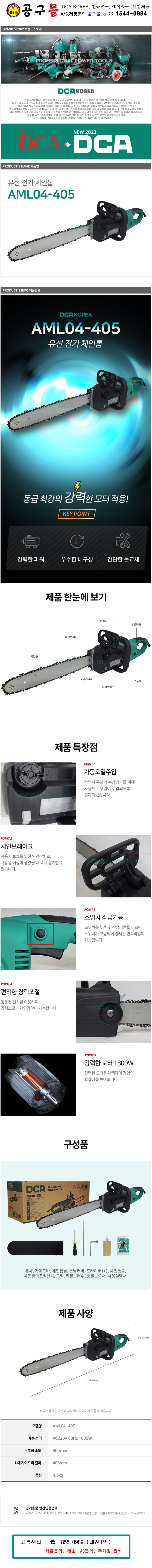 DCA-전기체인톱(16) AML04-405 220v-1800W 가이드바포함 나무절단 화목보일러