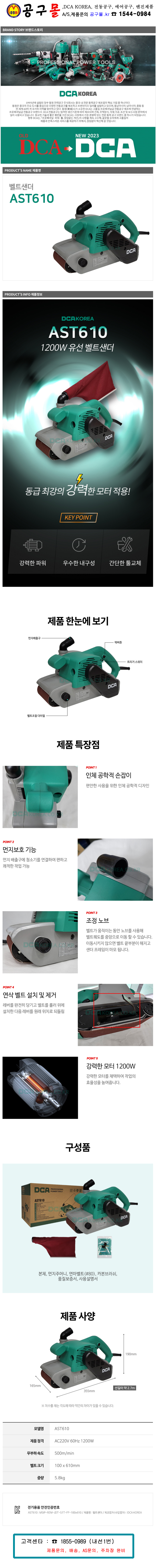 DCA-벨트샌더 AST610 220V-1200W 4 먼지주머니포함 유선 샌다 벨트페이퍼 샌딩기(MD)