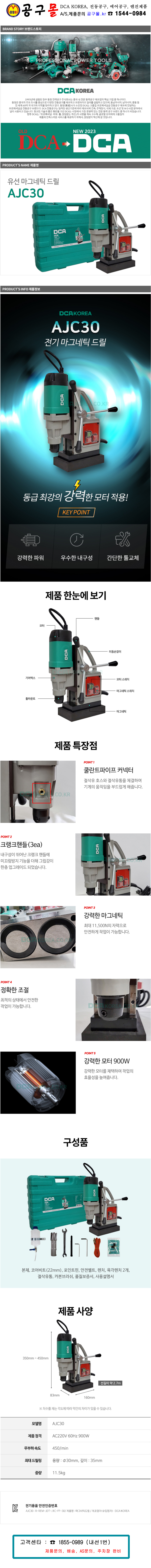 DCA-마그네틱드릴 AJC30 220v-900W 최대 30mm 천공 마그드릴 브로치 캇타 H빔 천공