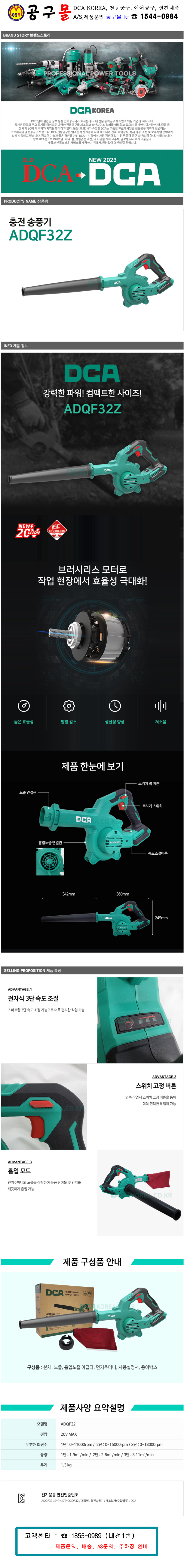 DCA-충전송풍기(본체) ADQF32Z 20V BL모터 3단속도조절 더스트백포함 무선브로와 먼지제거
