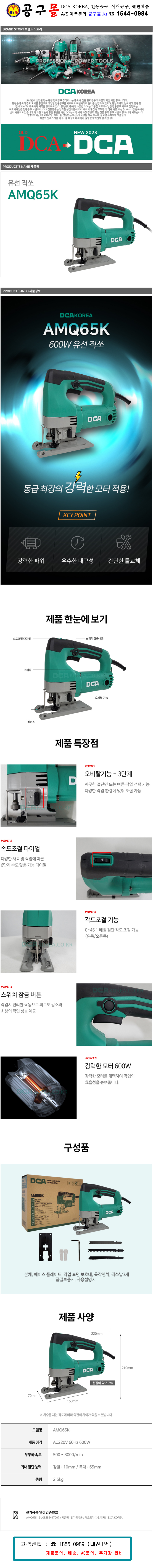 DCA-직소 AMQ65K 220V-600W 6단속도조절 오비탈기능 직소날 3종포함 유선 직쏘기