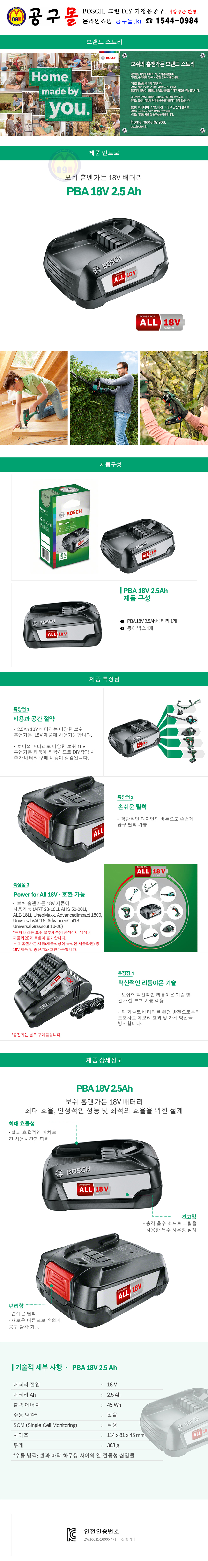 보쉬 18V 배터리 18V정원공구용 2.5Ah (V0G), 1600A01V0G, C524-7651