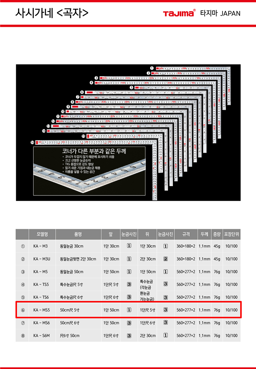 타지마 사시가네 KA-MS5 TAJIMA-공구몰/목공용 직각자,목공공구,141402480152