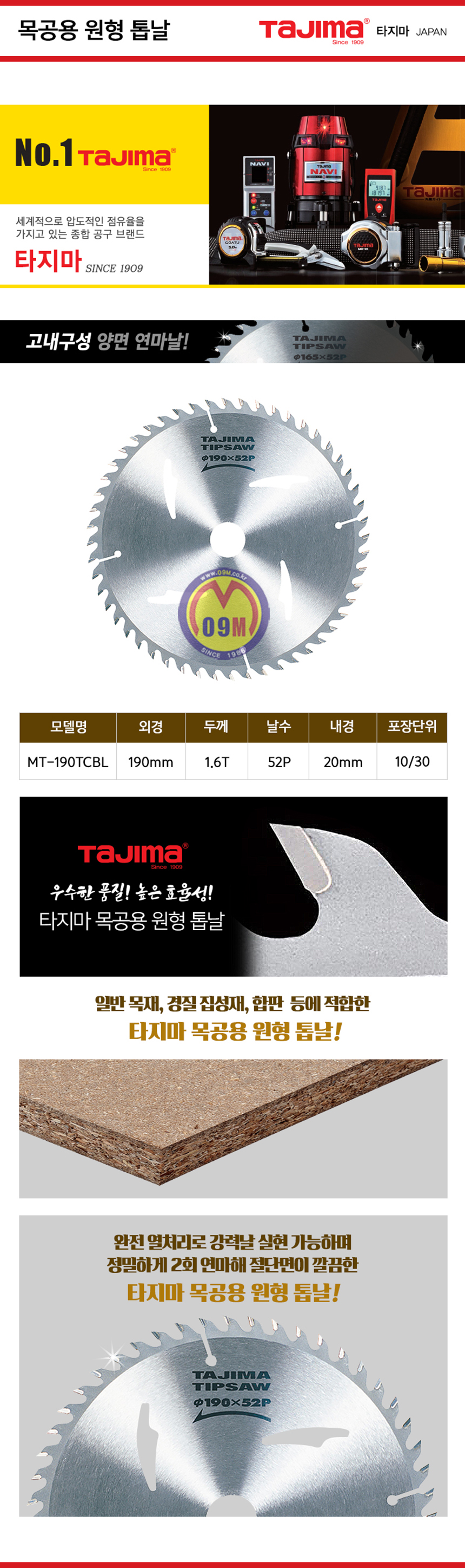 타지마 목재 초경 원형톱날 MT-190TCBL TAJIMA-초경톱날,111111850063