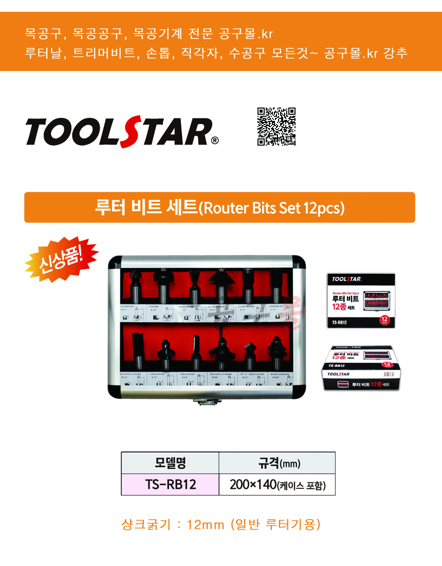 툴스타 루터비트세트 TS-RB12, TOOLSTAR,툴스타,라우터비트,공구몰,TSRN12