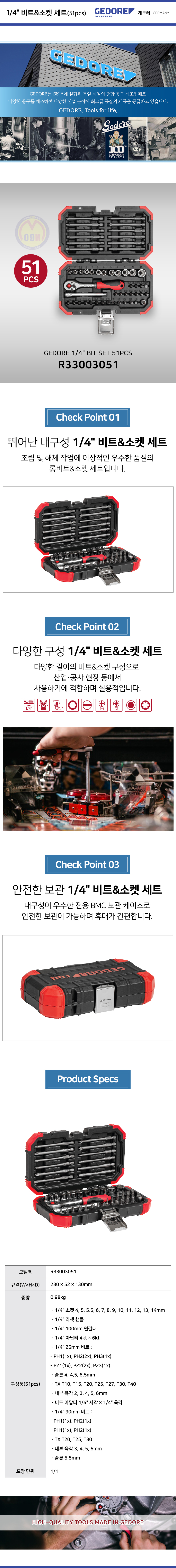게도레 1/4 비트n소켓세트 R33003051 (51PCS) GEDORE,독일공구, 공구몰,101001140737
