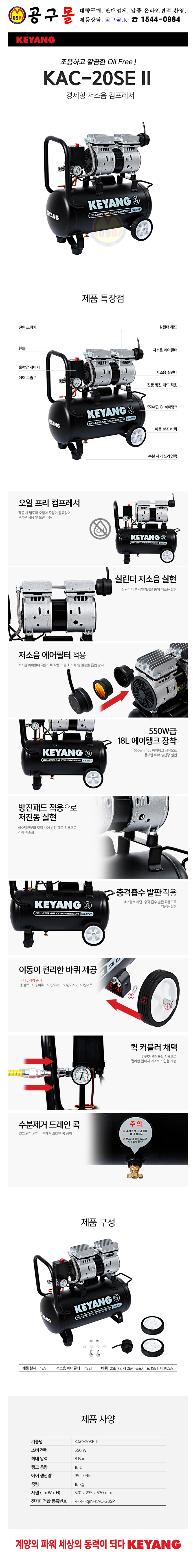 계양 경제형 저소음 컴프레서 KAC-20SE II (2HP) 계양콤프레샤, KEYANG, 공구몰, KAC-20SE II