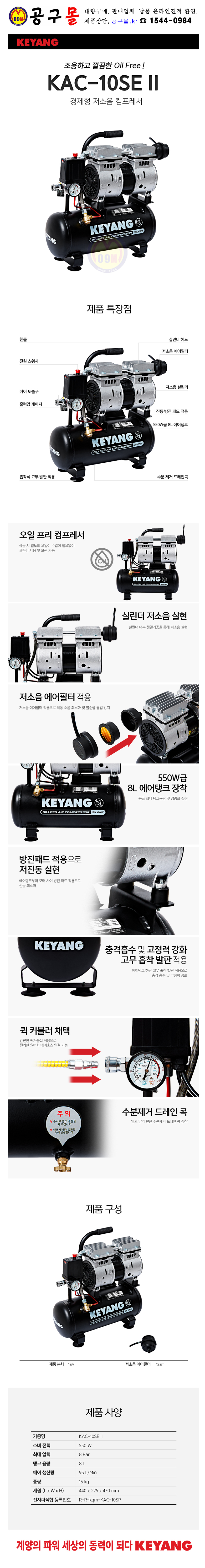 계양 경제형 저소음 컴프레서 KAC-10SE II (1HP) 계양콤프레샤, KEYANG, 공구몰, KAC-10SE II