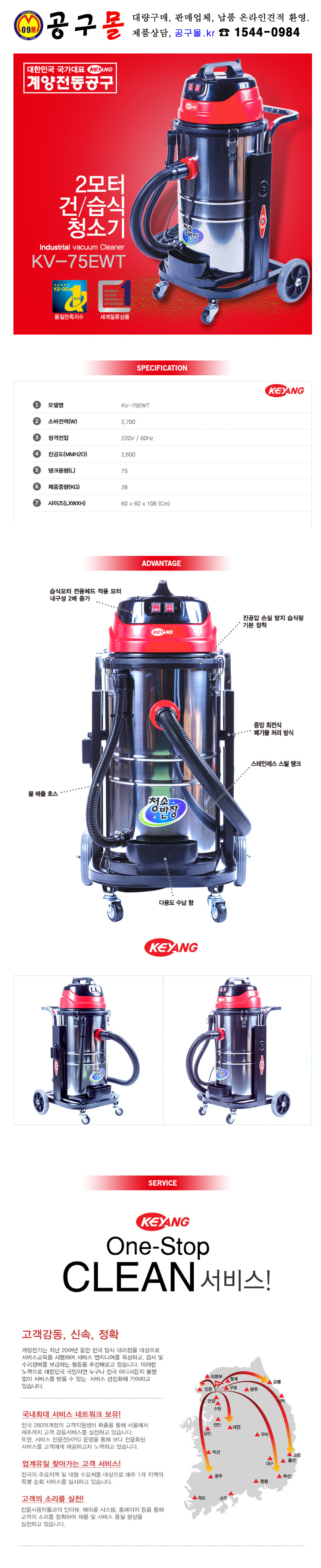 계양 2모터 건/습식 진공청소기 KV-75EWT KEYANG, 건식, 습식, 진공청소기