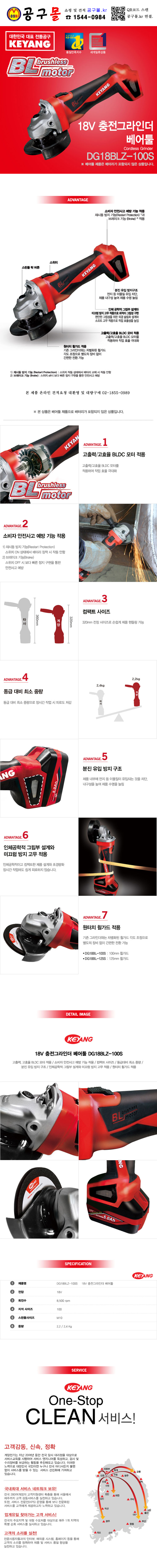계양 18V 충전그라인더(베어툴) DG18BLZ-100S(배터리충전기별매) 앵글그라인더 공구몰닷컴 8004338 C503-6815