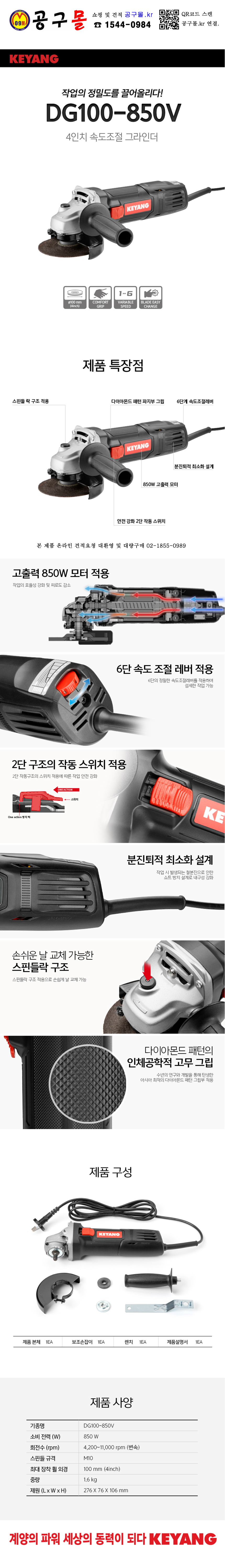 계양 그라인더 DG100-8P KEYANG 디스크 앵글그라인더 공구몰 9800075 공구몰닷컴
