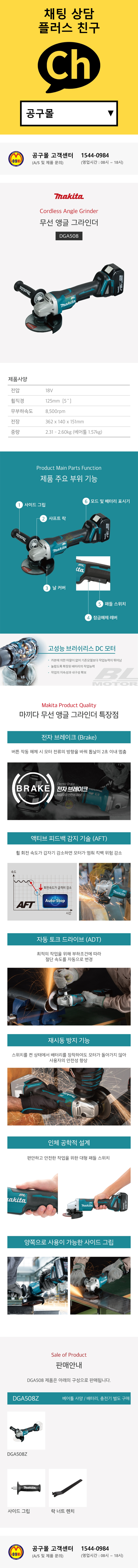 마끼다 18V 무선그라인더 DGA508ZX3 (18V-베어툴) 패들스위치타입 충전그라인더