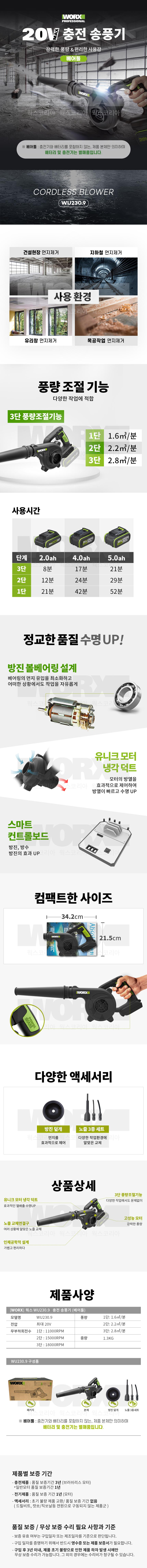 웍스 충전송풍기 WU230.9 (20V-베어툴) 충전브로워