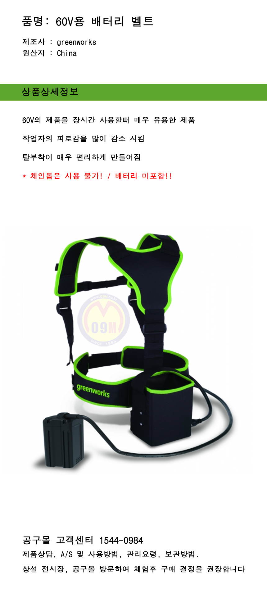 그린웍스 60V 273 배터리 벨트 울산공구몰 GW2908273