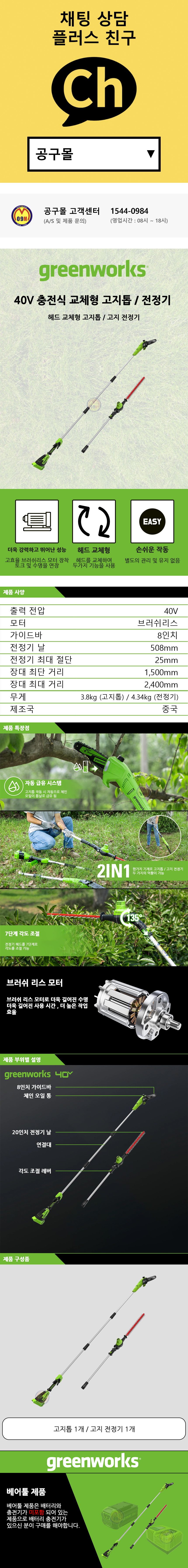 그린웍스 콤보 고지톱 고지전정기 (40V-베어툴) 헤드교체형