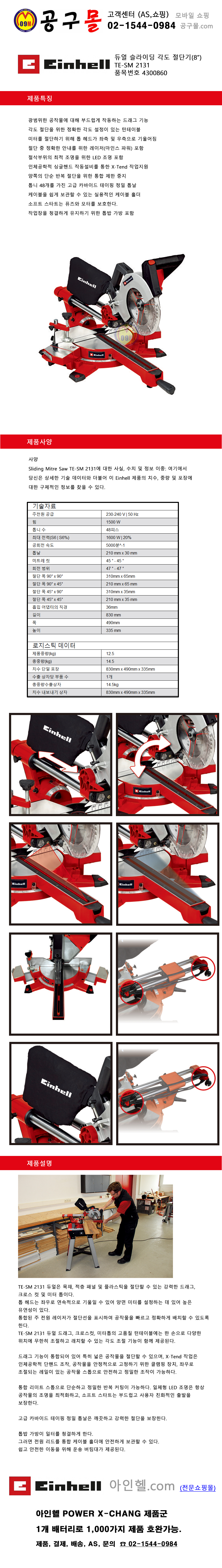 아인헬 듀얼 슬라이딩 각도절단기 TE-SM 2131, 220V, einhell, 공구몰, 원형톱, 4300860