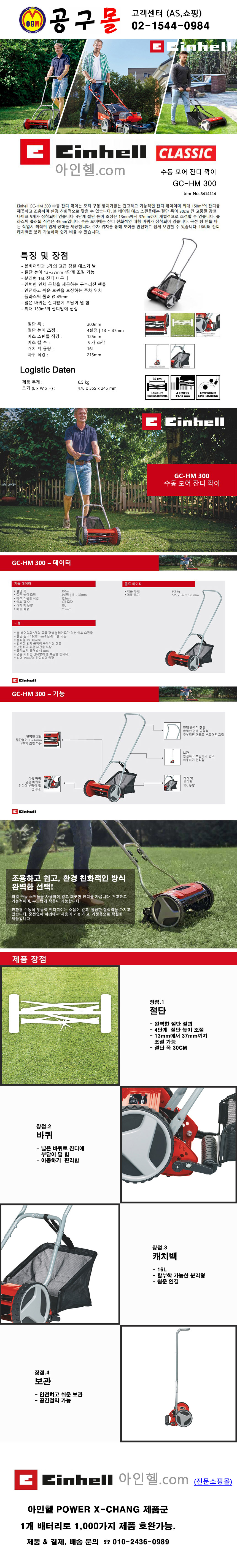아인헬 수동모어 잔디깍기 GC-HM300, Einhell 정원용공구,공구몰,3414114