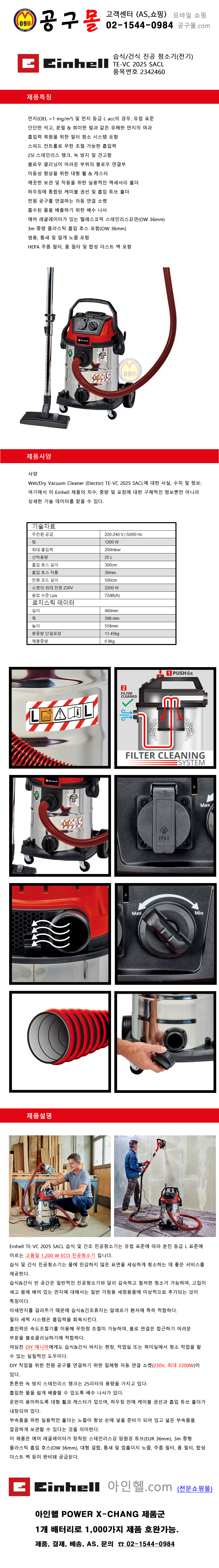 아인헬 습식/건식 진공청소기(전기) TE-VC 2025 SACL, einhell, 공구몰, 업무용청소기, 2342460