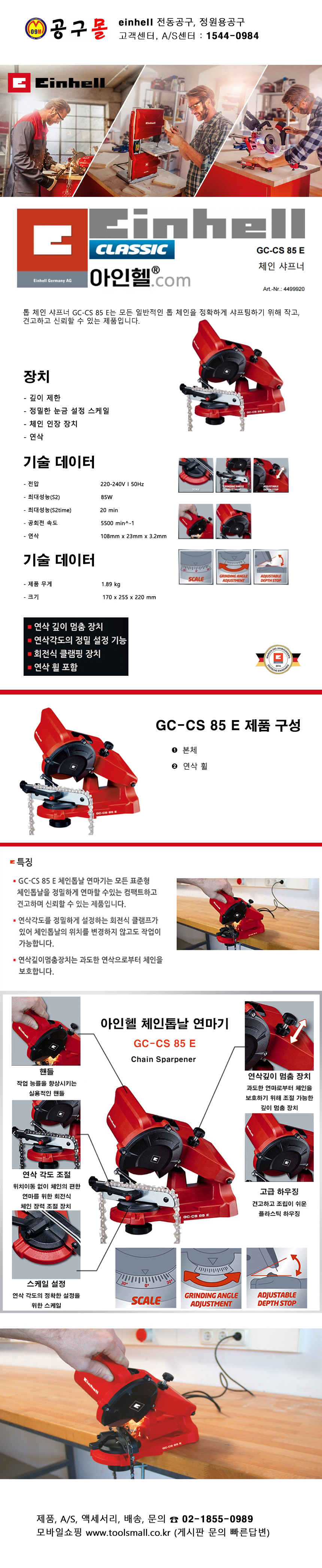 아인헬 체인톱날 샤프너 GC-CS85E-220V-85W, 체인톱날 연마기, 4499920, GCCS85E, 4499920