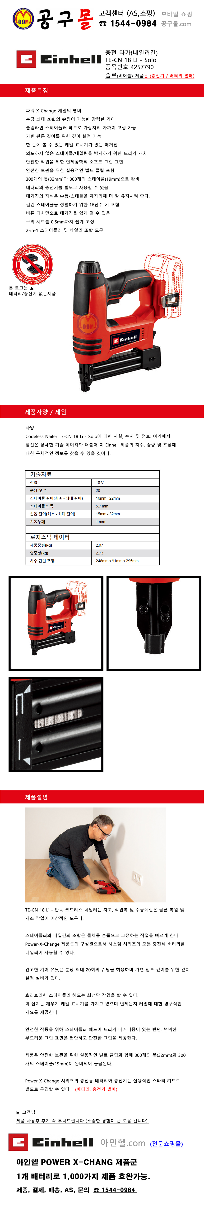 아인헬 충전 겸용타카(네일러) TE-CN18 LI - Solo einhell, 공구몰, 충전타카, 4257790