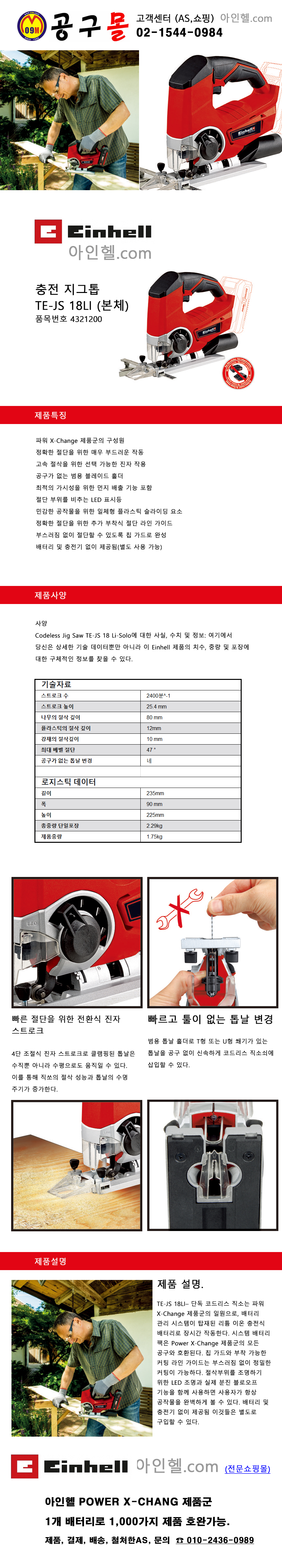 아인헬 충전 지그톱 TE-JS 18LI (본체) einhell, 직쏘기, 직쑈기, 직쏘, 공구몰, 4321200