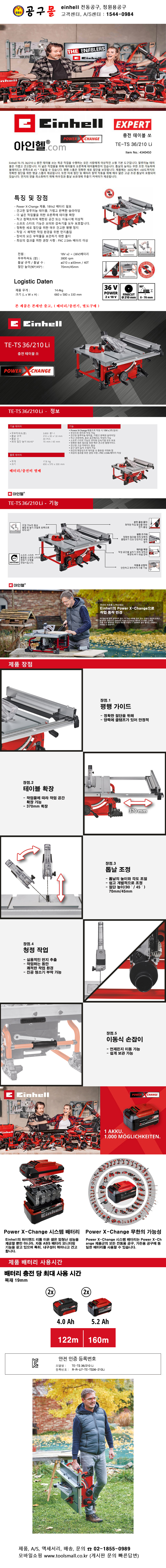 아인헬 충전테이블쏘 TE-TS36/210 Li, 36V 테이블톱, 공구몰,4340450