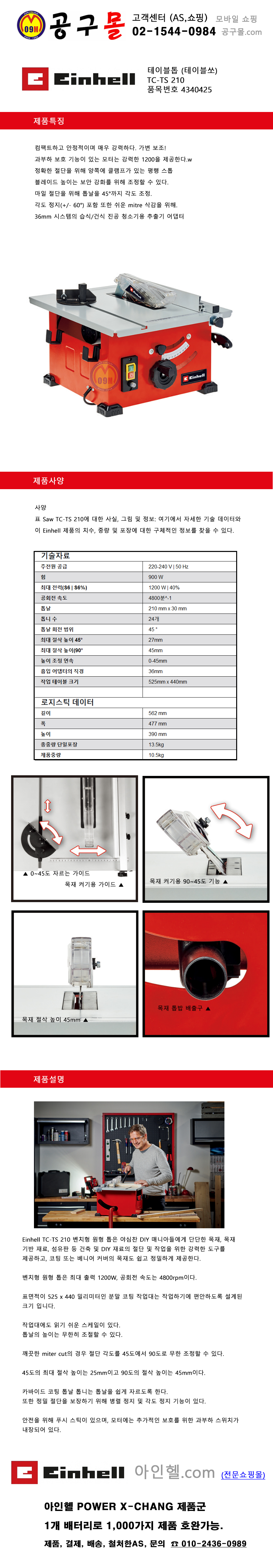 아인헬 테이블톱 TC-TS 210 einhell, 공구몰, 테이블쏘, 4340425