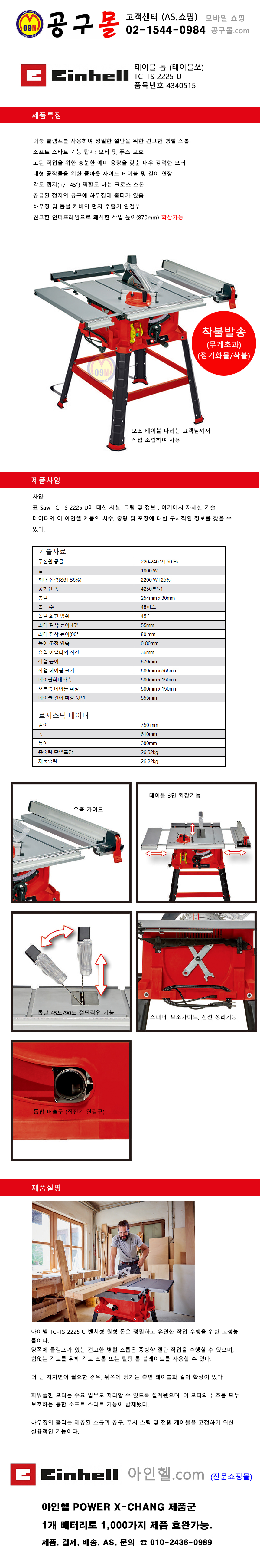 아인헬 테이블톱 TC-TS 2225 U einhell, 공구몰, 테이블쏘, 전기톱, 원형톱, 목재재단기, 4340515