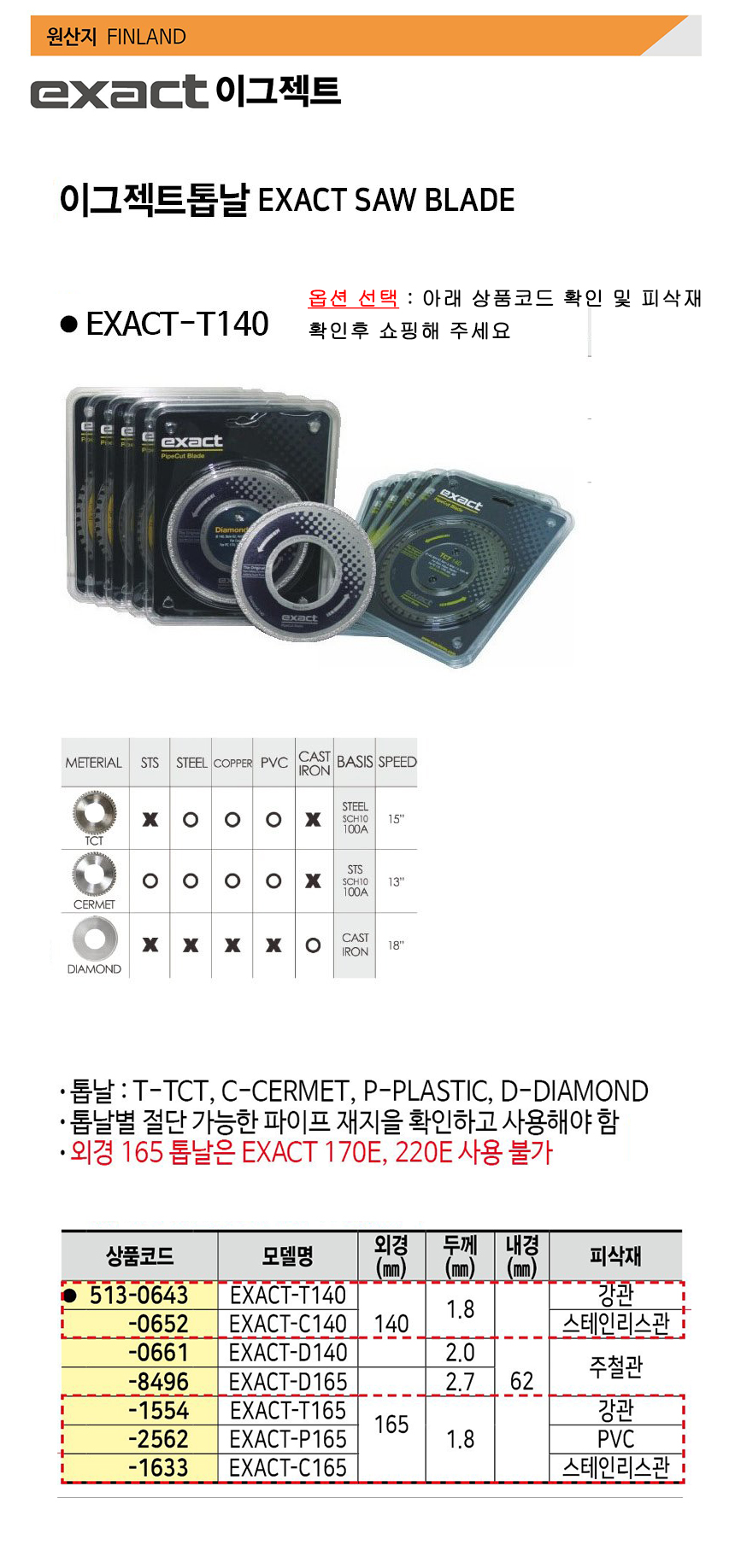 이그젝트쏘 톱날 강관, 스테인리스관, 주철관, PVC파이프