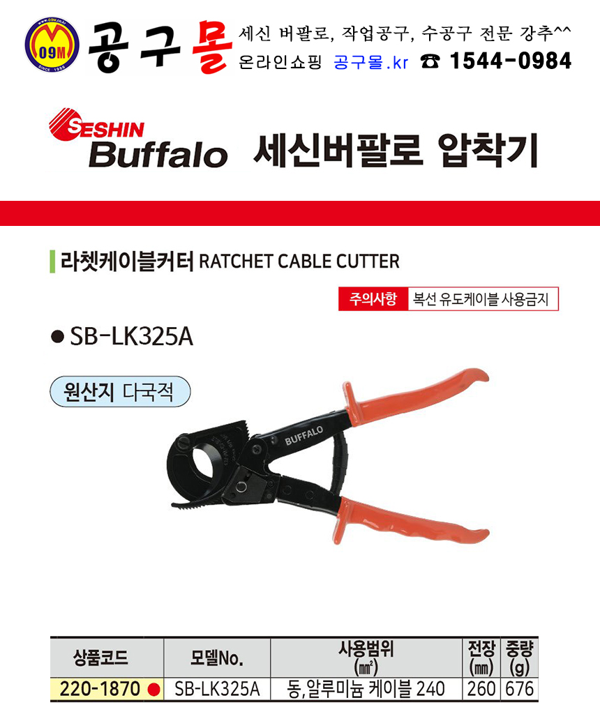 세신 라쳇케이블커터 SB-LK325A (160mm) 카투스,SESHIN BUFFALO, 버팔로,C220-1870