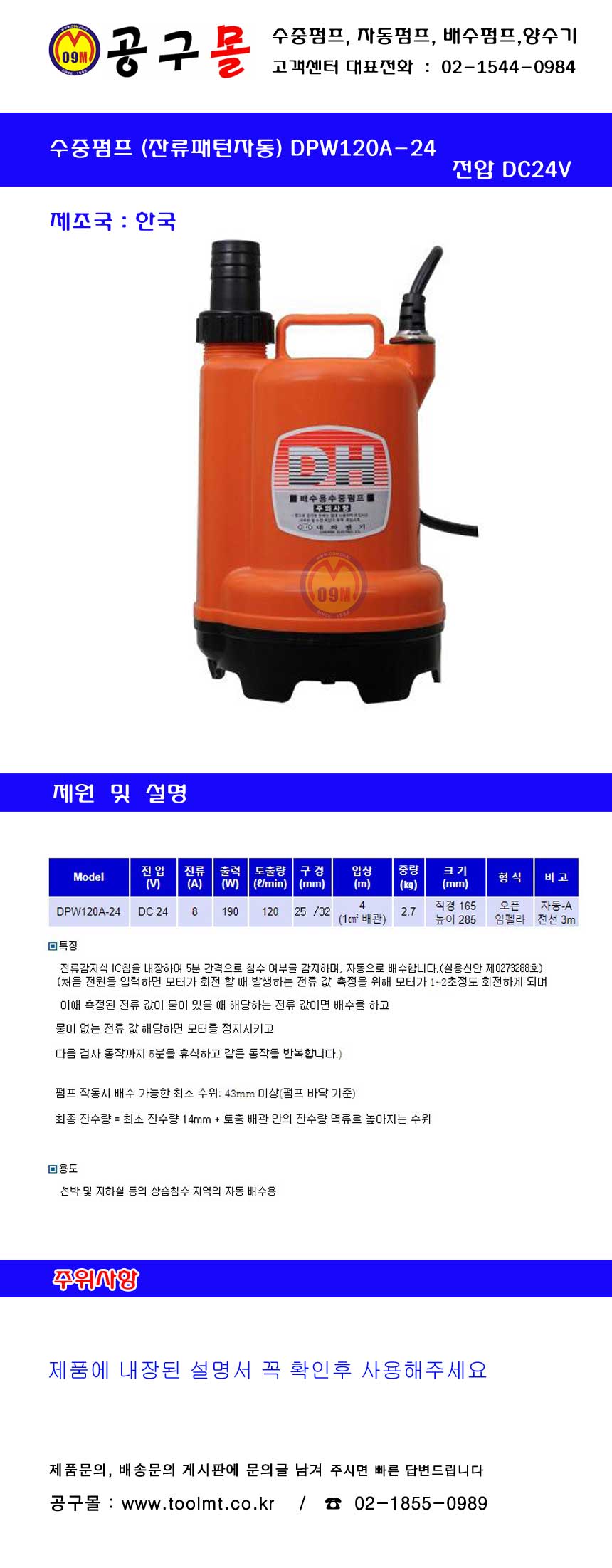 : 2603대화전기-수중펌프, 공구몰 / 한국