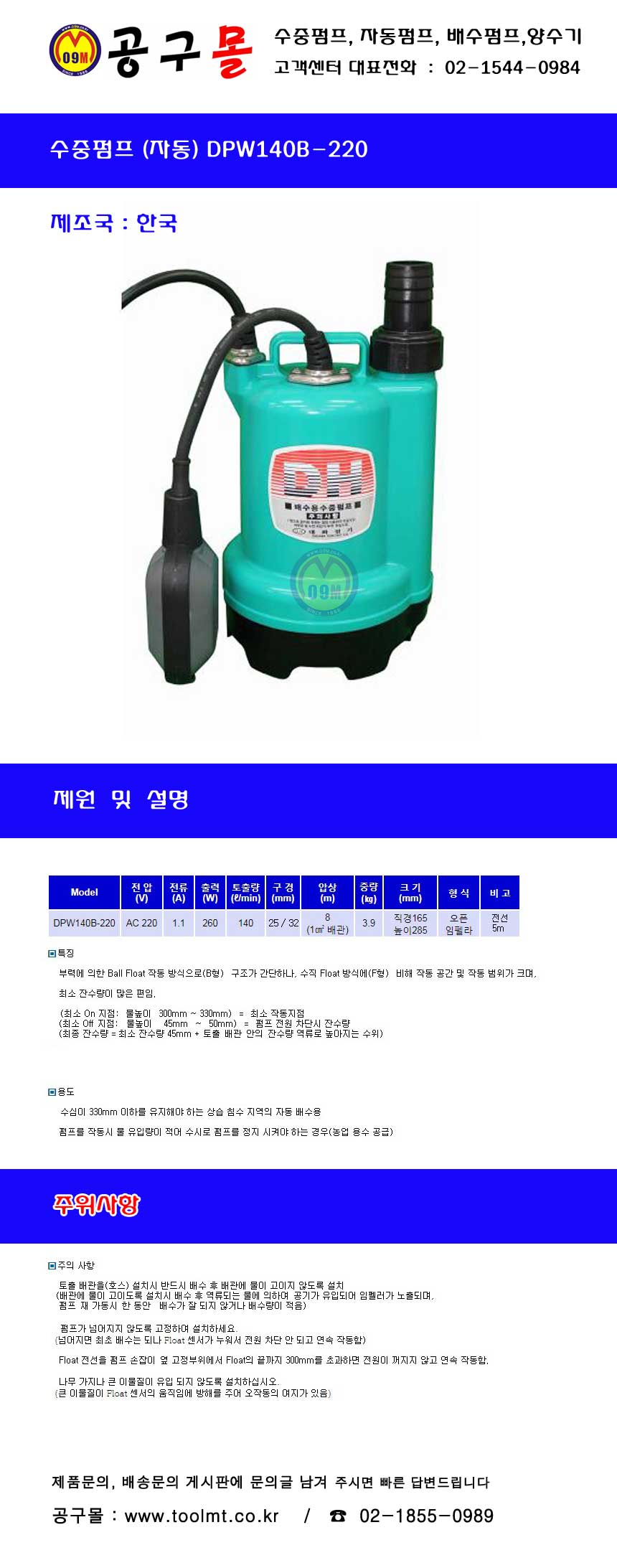 : 2603대화전기-수중펌프, 공구몰 / 한국