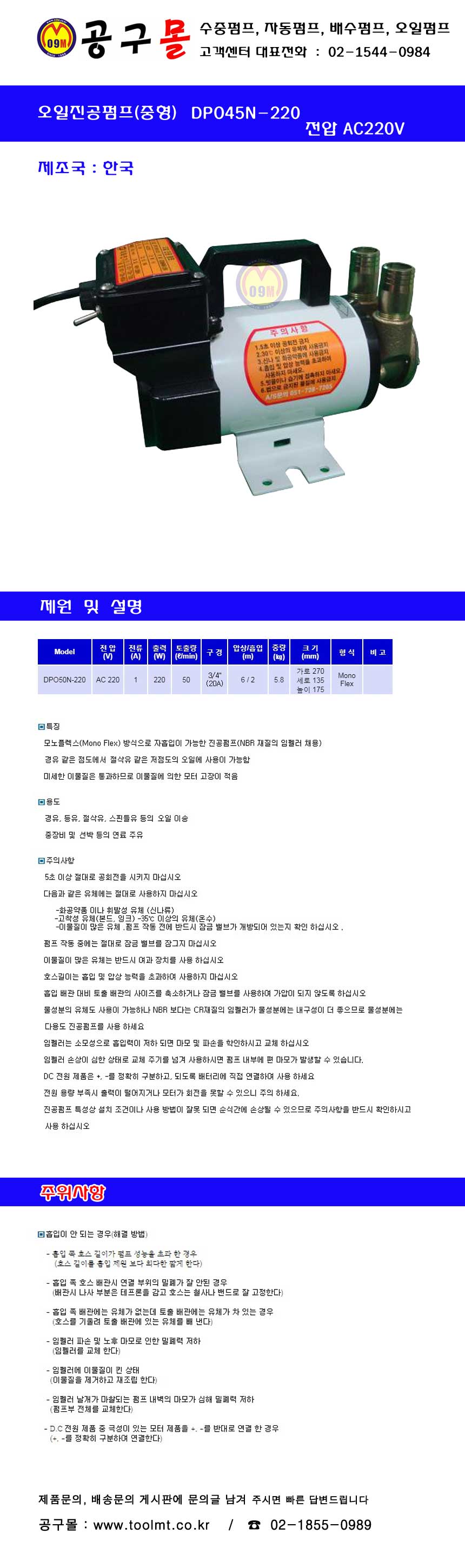 대화전기 오일펌프 DPO30S-220 (동) (AC220V) 대화전기,연료, 오일, DC, AC, 진공펌프, 울산공구몰,5292776