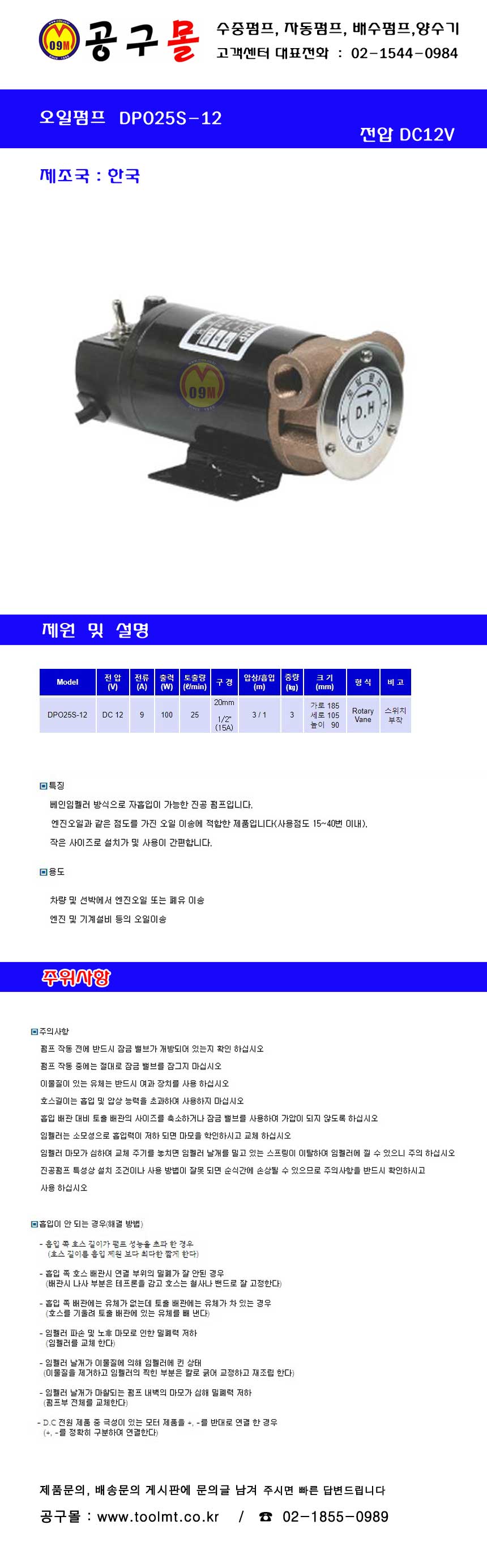 대화전기 오일펌프 DPO25S-12 (동) (DC12V) 대화전기,연료, 오일, DC, AC, 진공펌프, 울산공구몰,5293252
