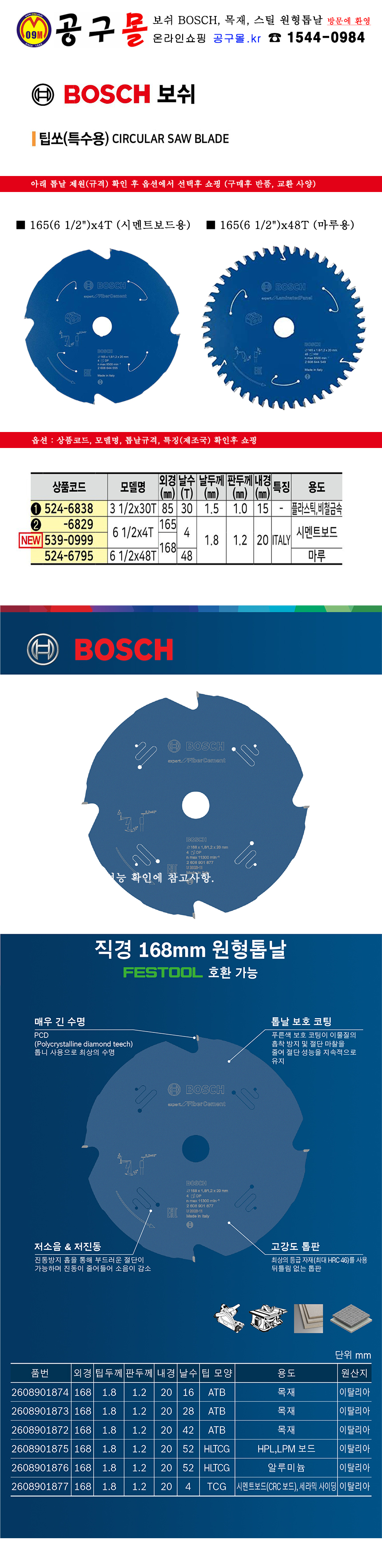 보쉬 팁쏘(마루용) 165(6 1/2)x48T (549), BOSCH, 2608644549