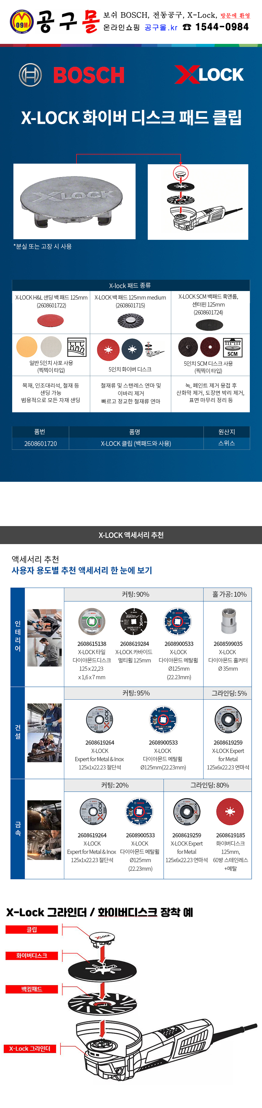 보쉬 X-Lock 클립 화이버디스크전용 (720), 공구몰, 2608601720