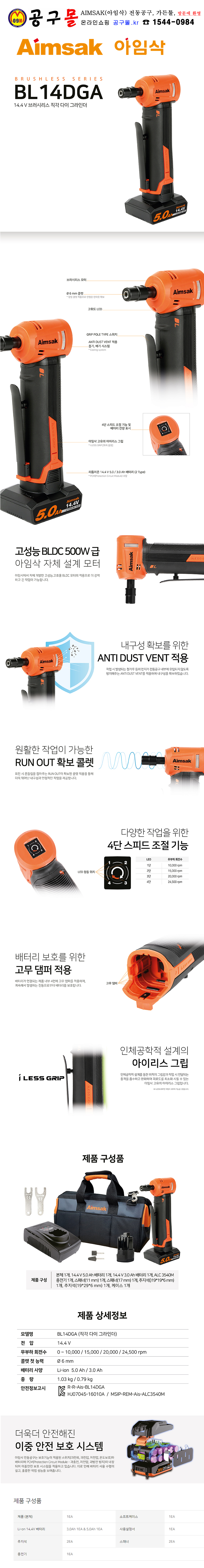 아임삭 충전다이그라인더 BL-14DGS536 (14.4V,3.0,5.0Ah각1개) 직선, AIMSAK, 공구몰, C 508-8252