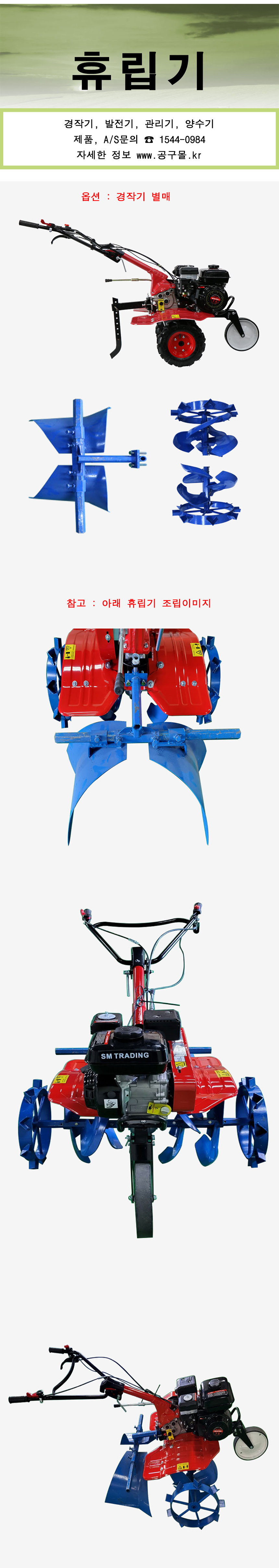 화스단 4행정 경작기 R001 10HP, 380Kg, 로터리, 골타기 겸용, (공구몰