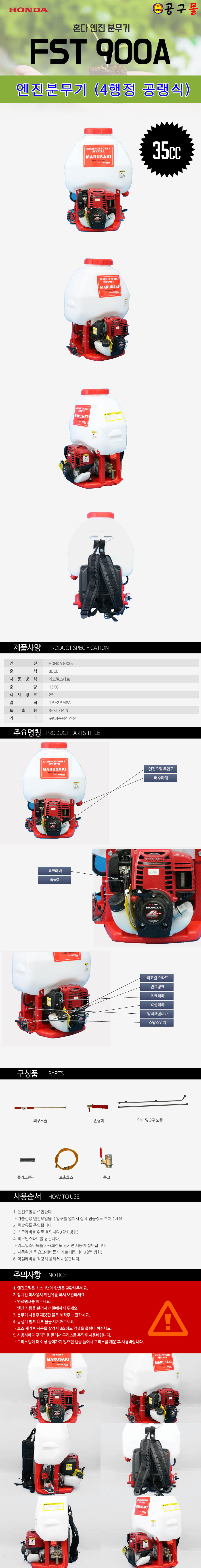 카세이 엔진분무기 FST900H(35) (4행정 35cc) GX35엔진, 공구몰,엔진분무기
