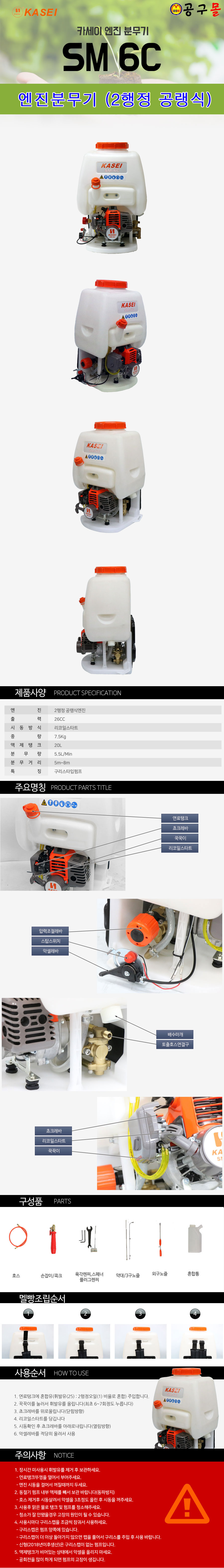 카세이 엔진분무기 SM6C (2행정,26cc) 카세이.KASEI, 공구몰,엔진분무기
