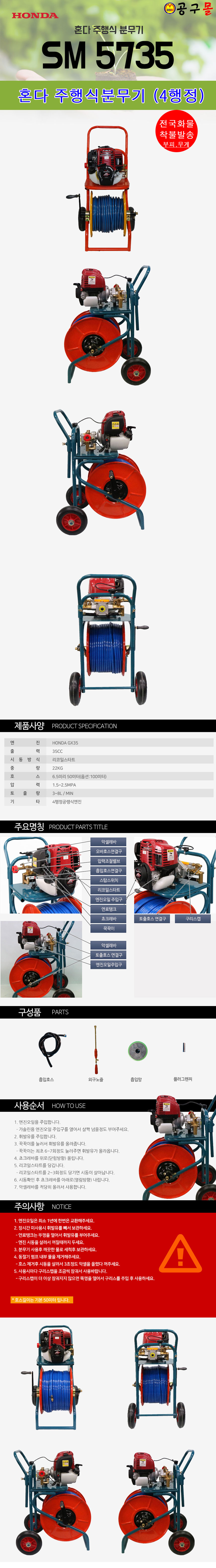 카세이 주행식 분무기 SM5735(50M) (4행정 35cc) GX35엔진, 공구몰,엔진분무기