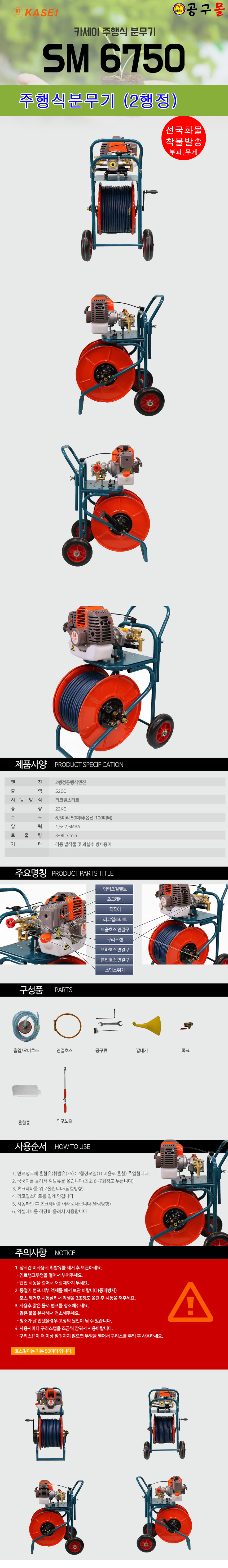 카세이 주행식 분무기 SM6750(50M) (2행정,52cc) 카세이.KASEI, 공구몰,엔진분무기