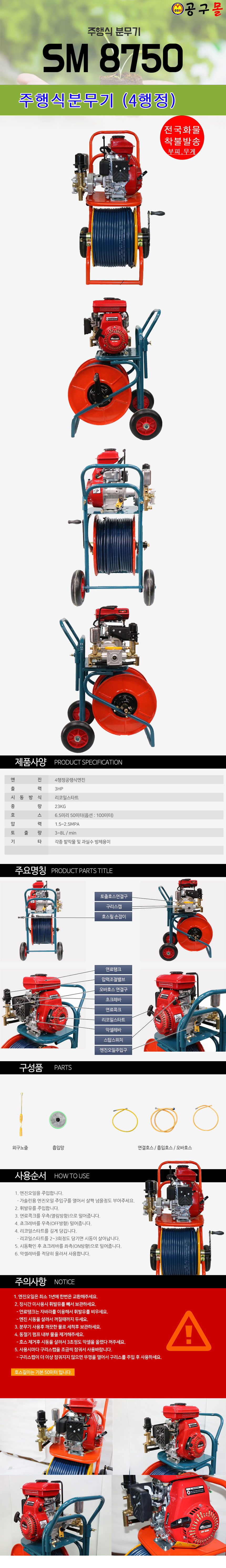 카세이 주행식 분무기 SM8750(50M) (4행정,호스50M) 카세이.KASEI, 공구몰,전기분무기