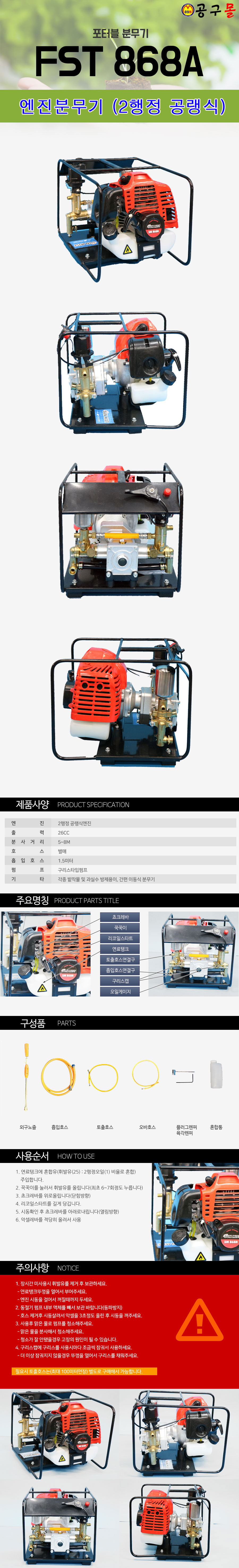 카세이 포터블분무기 FST868A (4행정 3HP) SUNMIST, 공구몰,엔진분무기