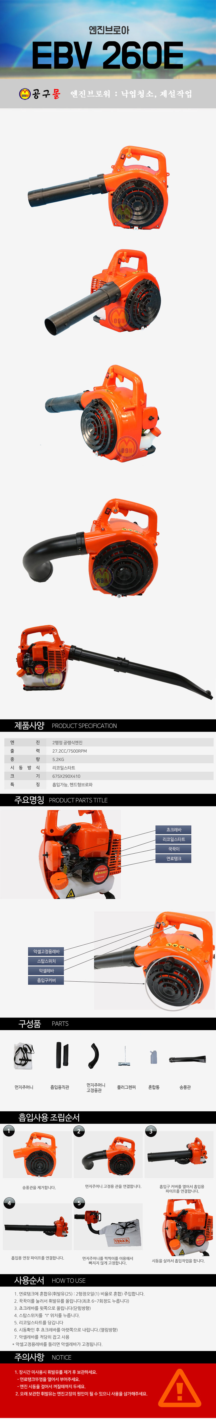 카세이 2행정 엔진브로아 EBV260E (27.2cc,5.2Kg) 낙옆청소기,제설작업,엔진브로아
