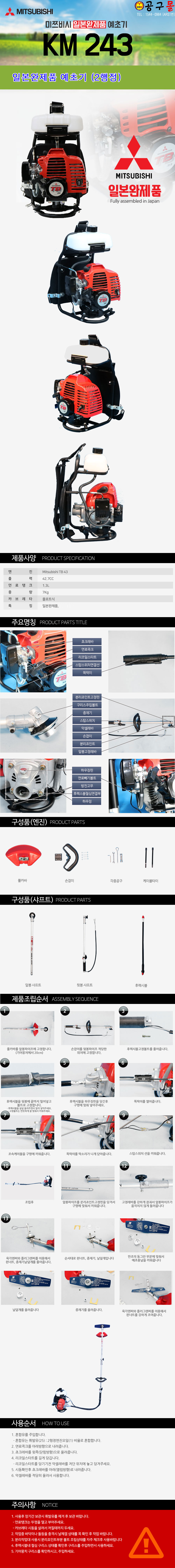 카세이 미쯔비시 엔진예초기 KM243 (42.7CC) 2행정 Mitsubishi TB43,일본완제품,직수입