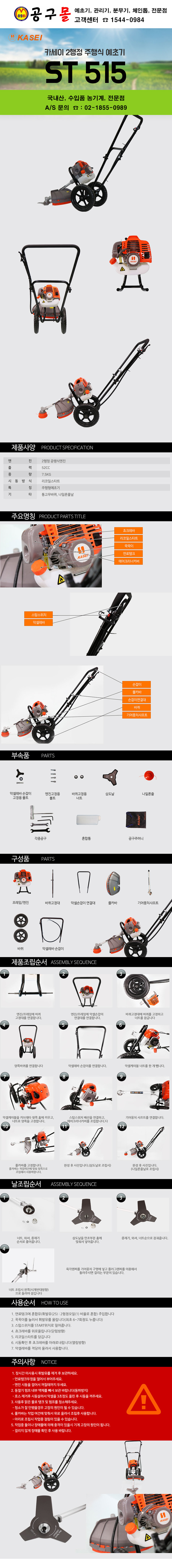 주행식 엔진예초기 5ST515 (52cc) 2사이클 카세이/바퀴형예초기