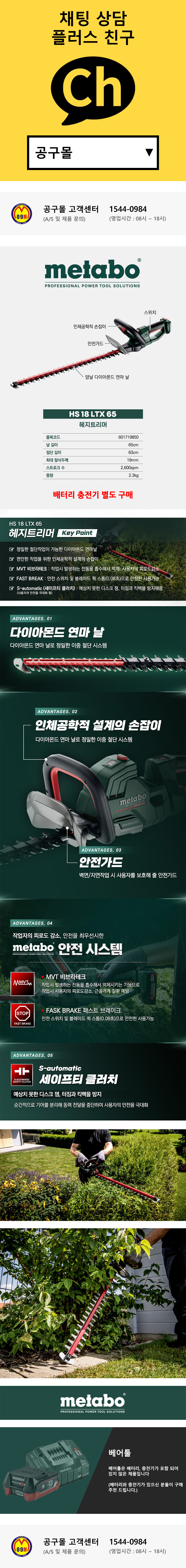 메타보 충전헤지트리머 HS18LTX 65 (18V-베어툴) 전정기 트리머