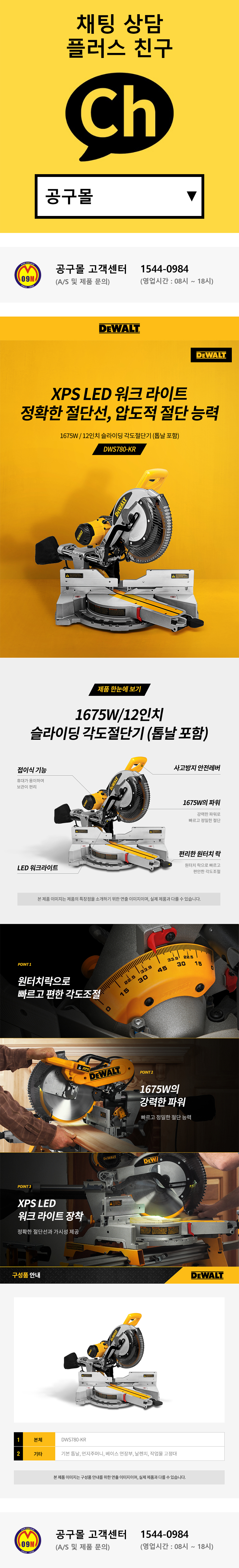 디월트 12 슬라이딩 각도절단기 DWS780 (1675W) 슬라이딩절단기