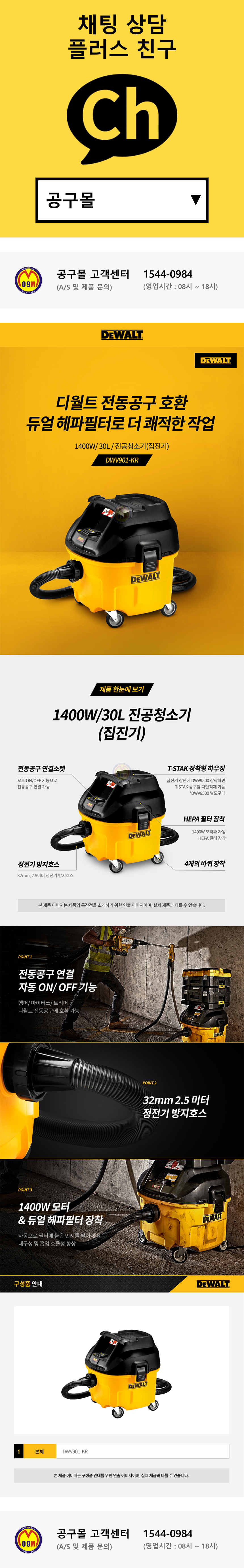 디월트 진공청소기 DWV901 (1400W-30L) 집진기 공구 연동형 청소기